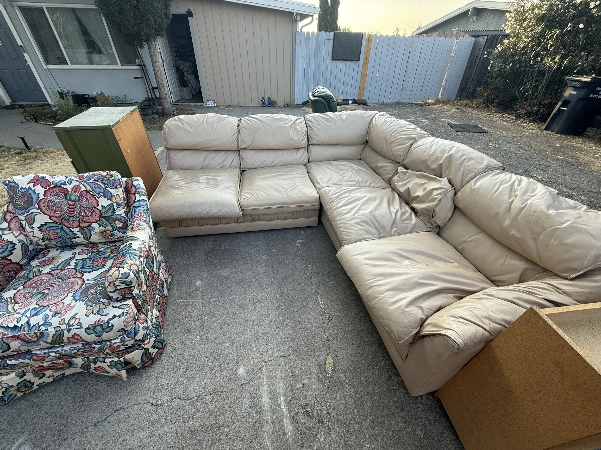 Junk removal is how we first start the job…. Removing your old household junk like furniture, appliances, old stuff from the garage… You name it.